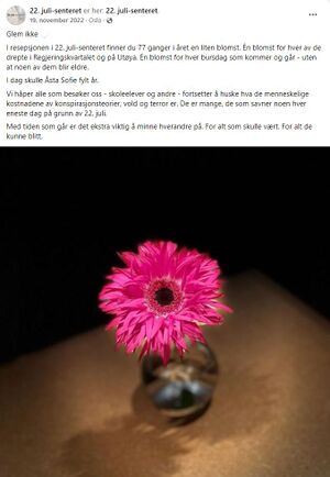 Foto: Skjermdump 22. juli-senterets Facebookside