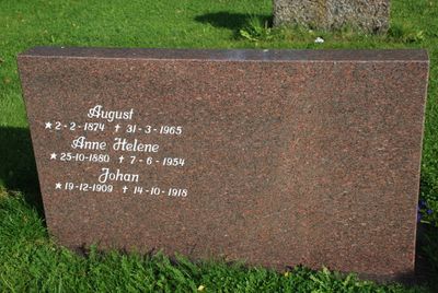 Gravminnet til Anne Helene og August Holmstad på kirkegarden på Hoff.