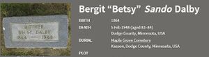 Bergit “Betsy” døde 05.02.1948 og er begravet på samme kirkegård.
