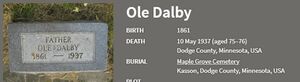 «Børre Dalby, utv. fra Vang Hedmark 1866. Pionergårdbruker ved Ada, Minnesota fra 1878. Sønnen Ole Dalby, kjøpmann siden 1905 i Greenbush, Minnesota. Borgermester siden 1910. En annen sønn, Charles A. Dalby, sakfører i Minneapolis MN fra omtrent 1890.»
