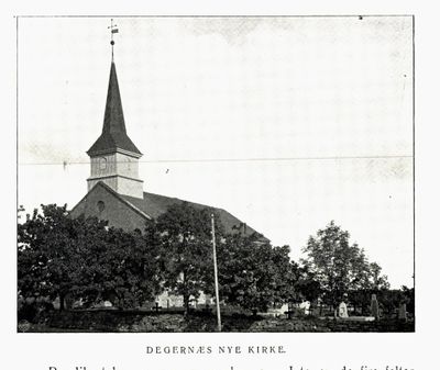 Degernes kirke, fotografi fra boka Rakkestad herred 1814-1914 av Torleiv H. Toftdahl (1914).