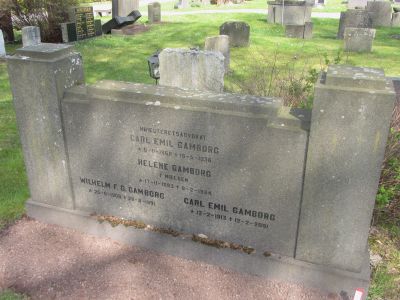 Carl Emil Gamborg er gravlagt i familiegrav på Vestre gravlund i Oslo.