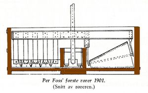 Eksempel på en mysostrører av det vanlige slaget - uten vannavkjøling, anno 1901