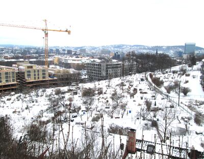 Parsellhagen sett mot sør fra Gamle Aker kirkegård.