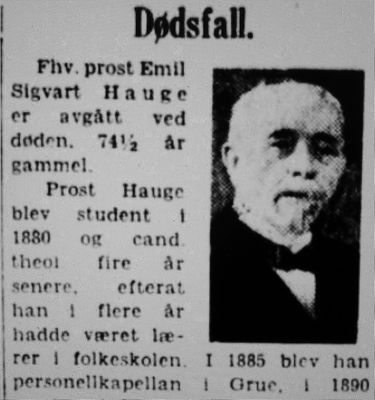 Emil Sigvart Hauge var prest i Drangedal en tid.