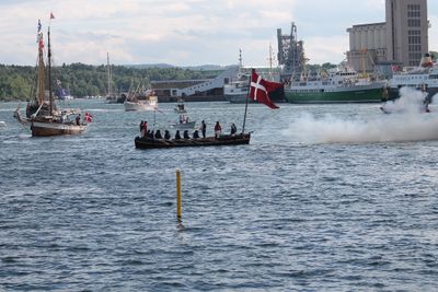 Konvoien på vei inn til Bjørvika, her redningsskøyter og replika av vikingskip.