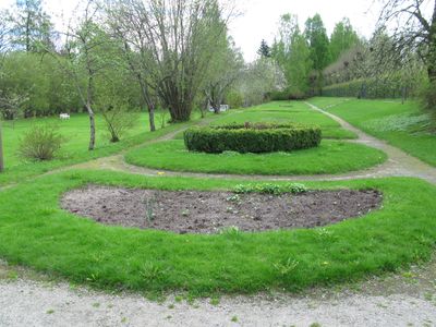 Parken ble innviet i 1804, og var anlagt som en engelsk landskapspark der målet var å imiterer de klassiske landskapsidealer med naturlige trær, åpne gressflater og i harmoni med landskapets naturlige formasjoner. Nær huset er hagen strukturert symmetrisk, inspirert av eldre rennesansehager. I akse ut fra hovedbygget ligger det tydelige barokke inspirasjoner til grunn, med symmetriske veier om en fontene og en over 250 meter lang lindelabyrint. Videre utover er parkene lagt etter naturidealer med bekker, stier, en kunstig skog og et lite vann.