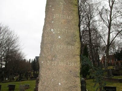 Hans Hein Theodor Nysom er gravlagt på Vår Frelsers gravlund i Oslo. Tittelen Statsraad er benyttet på gravminnet, som har form av en bauta.
