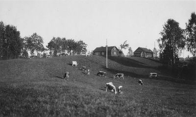 Ifølge notatene til gardbruker Ole Christian Haug ble husa oppført i 1849. «Materialerne er antagelig af et Stabur paa Haug. Stuen var 10 Alen lang og 9 Alen bred 3 1/2 Alen høi. Skaalen var hengt paa Veggen paa østre ende af Stuen. Laden 12 Alen lang 8 Alen bred 3 Alen høi der stod udi bakken med et lidet Fjøs under. Stuen og Laden tegeltekt. Dører og Glaser var antagelig af den gamle nedre Bygning paa Haug.» Det hørte 15 1/2 mål jord til, halvparten dyrka.