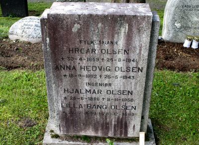 Hroar Olsen er gravlagt i familiegrav på Vestre gravlund i Oslo.