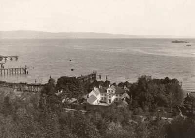 Ilsvika ca. 1880 med lysthuset og Prins Frederiks batteri