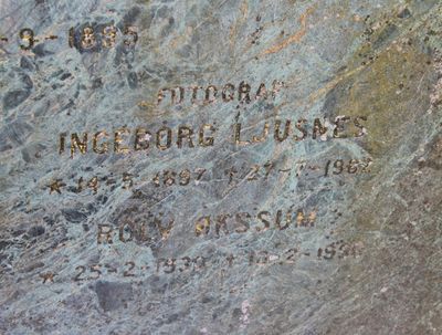 Ingeborg Ljusnes er gravlagt på Vår Frelsers gravlund i Oslo. Tittelen Fotograf er benyttet på gravminnet.
