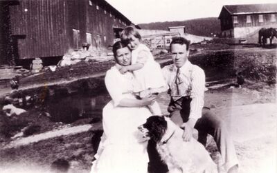 Asta og Jacob med datteren Louise på tunet på Fossesholm