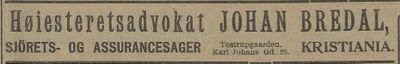 - H.r.advokat Johan Bredal død. Østlands-Posten (27. april 1948).