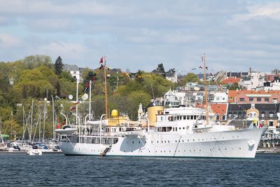 - Kongeskipet i Frognerkilen med Kongen til høyre i bildet og Oscarshall i bakgrunnen.Foto: Stig Rune Pedersen (2011).