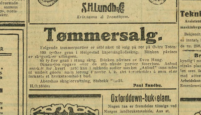 16 mars idag, har tømmerhuggerne hugget atpaa 2 1/2 tylft tømmer da det viste sig bli forlite det første hugne. Igaar var indkjøbslaget møte paa Nøkleberg hvor melkepengerne ogsaa blev utdelt men der er nu blit under halvdelen av forige aars priser
