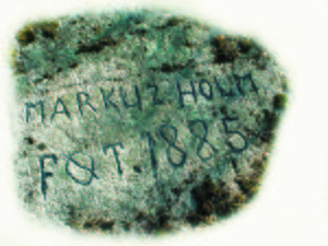 Vi sparket vekk løvet fra bergknauser for å lete etter skålgroper. Jeg skal innrømme at jeg ble ganske opprømt da jeg fant en ristning som så ut som et runetegn, jeg ropte begeistret på Ole og sa at her er et runetegn. Han var mer rolig, det var tydelig at han var skeptisk. Han børstet litt, og det var et åttetall som kom frem, og etter enda litt børsting fant vi at her sto det tydelig 1885. Det var bare den nederste delen av et åttetall jeg hadde sett. Dette var tydeligvis ikke gammelt nok til å gi arkeologen det store kikk. Dagen etter var jeg tilbake på stedet med kone og gryteskrubb. Vi avdekket mer, her sto det:
