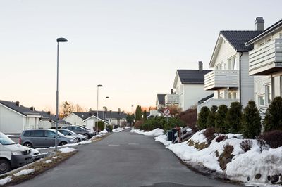 Kloppsteinveien sett sørover fra Gudrinveien.