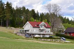 | 6 | Gnr. 55/40, «Helland» Eigedomen heitte Kyrkjekåsine, men fekk endra namnet til Midt-Bø ved frådeling i 1822. Garden fekk gnr. 55/2 i matrikkelen frå 1886. I 1880 kjøpte kjøpmann Godtfred Lund eigedomen og dreiv garden nokre år. I 1884 blei plassen Bøhegna, der Lund budde skild ut og fekk etter kvart bnr. 3. Ved skylddelingsforretning i 1899 heldt Lund att ein liten del av garden som i matrikkelen beheldt namnet Midt-Bø og bnr. 2. Det er denne saman med Bøhegna og bustadhuset der ein gjerne kallar «Lund» (Kyrkjevegen 25). Storparten av garden blei seld til felemakar Gunnar O. Helland. Garden fekk bnr. 11 og han gav den namnet Helland. I 1939 er garden ført opp med 55 da jord. Bø kommune kjøpte garden Helland (gnr. 55/11) i 1990. Tunet blei skild ut som bnr. 40 og selt i 1991 til Telemarksforskning, eller Hellandtunet forsknings- og næringssenter som det heiter i dag (2020). Dei reiv den gamle låven og sette opp ny «kontorlåve». Denne blei påbygd i 2020. | |