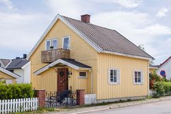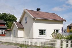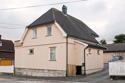 Even Evensen åpnet kolonialforretning her i 1923. Huset hadde opprinnelig saltak med arker på begge sider. På et tidspunkt har det blitt bygd om til halvvalma tak med takløft. | |
