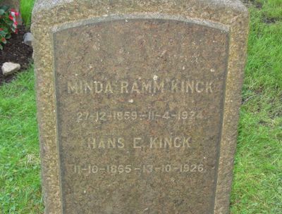 Minda Ramm Kinck er gravlagt på Vestre gravlund i Oslo sammen med sin ektemann.