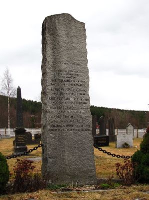 - Kari:Hkensdater:Lvtne, død 24. april 1745. Kirkegårdens eldste gravminne, flyttet fra Jugarmo.Foto: Siri Johannessen (2010).