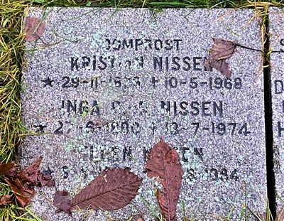 Nissen er gravlagt på Vår Frelsers gravlund i Oslo. Navnet "Kristian Nissen" er benyttet på gravminnet, sammen med tittelen "domprost".