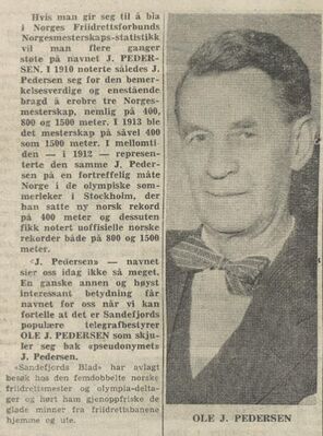Pedersen hadde de norske rekordene på 800 meter med tiden 2.00.9 og 1500 meter med tiden 4.18.5.