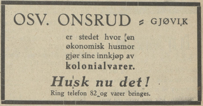 - Osvald Onsrud i Adressebok for Gjøvik by 1942 fra Digitalarkivet