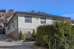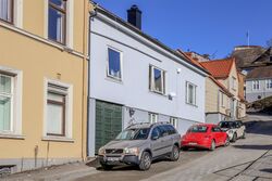 Motiv fra Peder Colbjørnsens gate i Halden, ved foten av Fredriksten festning.