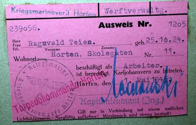 Da skipsbyggeriet på Horten ble omdannet til Krieges-Marinewerft Horten i 1942, var mulighetene for lønnet arbeid utenom verftet små i Horten. Teien kom i arbeid for tyskerne etter ønske fra Milorg. Han hadde fullført artium, og jobbet i hemmelighet også som ordonnans. Innsatsen han la ned, inkludert lange sykkelturer til «gutta på skauen» i Høyjord og Hvittingfoss, gjorde at Milorg ba han ta jobb på «Verven» - Marinens Hovedverft - for å fortsette kurerjobben innafor.