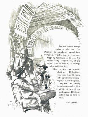 Tegningen fra 1898 forestiller en ikke nærere angitt Kristianiakafe. Teksten nevner Torggata, strøket der Samuel Chipaka arbeida som "opvarter" i omtrent denne perioden.