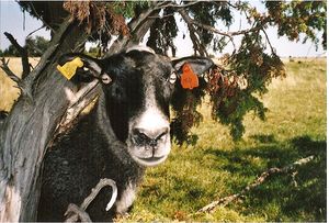 Sau merkt med øreklips av plast på Vendelsö i Halland i Sverige.