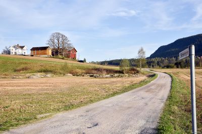 Skoevegen sett sørover fra Strengenvegen. Til venstre Skoe, gnr. 102/8.