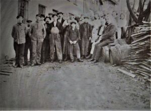 Foto fra 1920; Johan Larsens brygge i Sør-Son. Sikkerheten var ikke akkurat satt i høysetet. Foto: Anders Beer Wilse.
