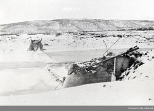 Tana bru i Tana elva etter sprengingen i 1944.