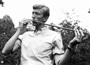 Trond Gjerdi speler seljefløyte på Norsk Folkemuseum i 1967[1]
