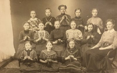 Håndarbeidsklasse (strikking) ved Vilberg skole. Bildet er utlånt av Hellbjørg Skullerud.