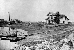 Brandvalsaga og bestyrerboligen i 1879. Foto: Akershusbasen.
