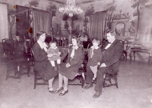 Amund Dag Foss med familie i Storstua («Riddersalen») på Fossesholm.