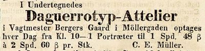 C. E. Müller var fotograf. Han «Annoncerer sitt Daguerreotyp-Atelier i Møllergd.» i Morgenbladet 25. november 1846.