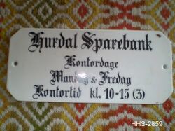 Skilt fra Hurdal Sparebank, som en periode hadde åpent mandag og fredag.