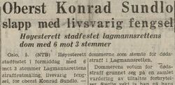 Utsnitt av oppslag om dommen mot Sundlo i Agderposten 6. oktober 1948.