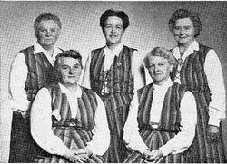 Styret i Østfold Fylkesforening ved 25-årsjubileet i 1961. Formann,Sigrid Evensen, Moss, varaformann Sigrid Eng, Askim, kasserer Maien Olsen, Halden, sekretær Hjørdis Pettersen, Fredrikstad, Styremedlem Dagny Kristiansen, Skjeberg.