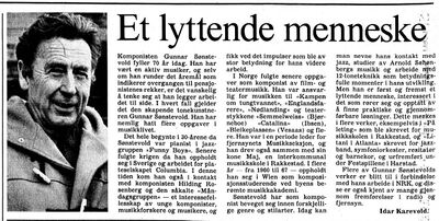 Faksimile fra Aftenposten 26. november 1982: Omtale av Gunnar Sønstevold ved hans 70-årsdag.