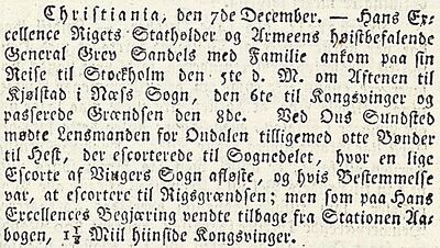 Utklipp fra Den Norske Rigstidende, 16. desember 1822.