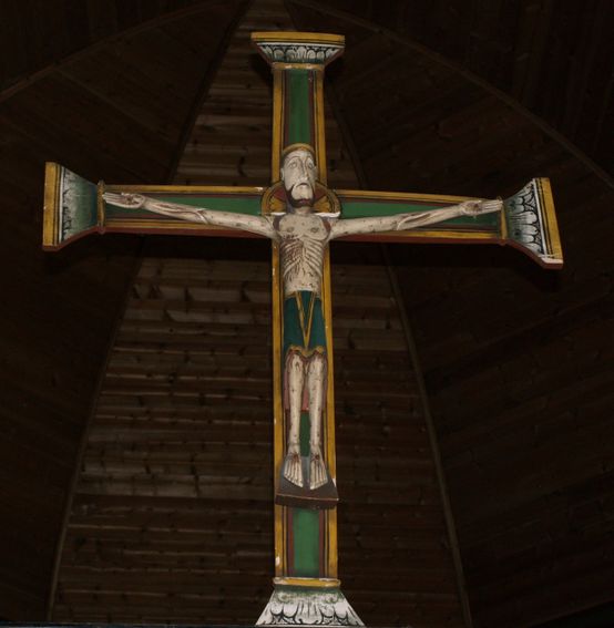 Det er nokre usikre faktorar i høve til den fyrste omtalen til riksantikvar N. Nicolaysen frå 1861. Han nemner at krusifikset var av «ek» eller eik, men ved nærmare vurdering har ein funne ut at det er ein anna tresort. Informasjonane frå Historisk Museum viser at krossen er av furu og Kristus av bjørk eller lind. Teknikken er hogge og skore med eit tynt lag måling over. B .E .Bendixen har òg skildra krusifikset i Bergens Museums Aarbog 1909, s.20.