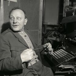 Uke 17 / Veke 17Aage engasjerte seg tidlig i arbeiderbevegelsen. Her er han delegat på Norges Socialdemokratiske Ungdomsforbunds landsmøte i Kristiania i 1919. Rønning nr 11 fra venstre i øverste rekke. Foto: Ukjent Aage Rønning i drosjeuniform på besøk i Harstad Tidende etter 50 år og beskuer en nymotens hullbåndstyrt settemaskin. En revolusjonerende nyhet som fikk en kort levetid før datateknologien overtok. Foto: John Berthung/Harstad Tidende. Aage Marinius Rønning (1897-1987) var typograf, gårdbruker, vognmann, drosjeeier og politiker i Harstad. Han var sønn av gårdbruker og vognmann John Rønning og hustru Ingeborg Andersen, han fra Tynset og hun fra Dovre. Han har fortalt at han som læregutt måtte delta i det meste av arbeidet som skulle gjøres i trykkeriet, og fungerte både som journalist, trykker og visergutt ved siden av det han gikk i lære for – typografien. Les mer... |