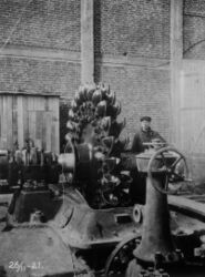 Uke 39 / Veke 39Mellomkrigstida var også en periode med nyetableringer og vekst, blant annet elektrisitetsutbygging. Her turbinen ved Hakavik kraftverk på Fiskum i Øvre Eiker Foto: Eiker Arkiv, Øvre Eiker Bibliotek (1921) | ||||