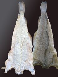 Uke 9 / Veke 9Kleppfisk nynorsk eller klippfisk (nynorsk/bokmål) er salta og tørka fisk av torskefamilien. Det mest tradisjonelle fiskeslaget er torsk, men lange, brosme, hyse (kolje) og sei blir òg bruka. Kleppfisken er gjennomsalta, flattørka og pressa fisk og slik sett meir foredla enn tørrfisk, som ikkje er salta og blir hengt på hjell til tørking. Tradisjonelt har kleppfisken vorte tørka på kleppar (reinflekte svaberg), men i nyare tid er det vorte vanlegare å tørke kleppfisken i innandørs tørkeanlegg. Sist i 1680-åra slo den frisisk-ætta trondheimsborgaren Jappe Ippes seg ned ved Kråksundet i Aure kommune på Nordmøre og begynte tilverking av kleppfisk i stor stil. Les mer... | ||||